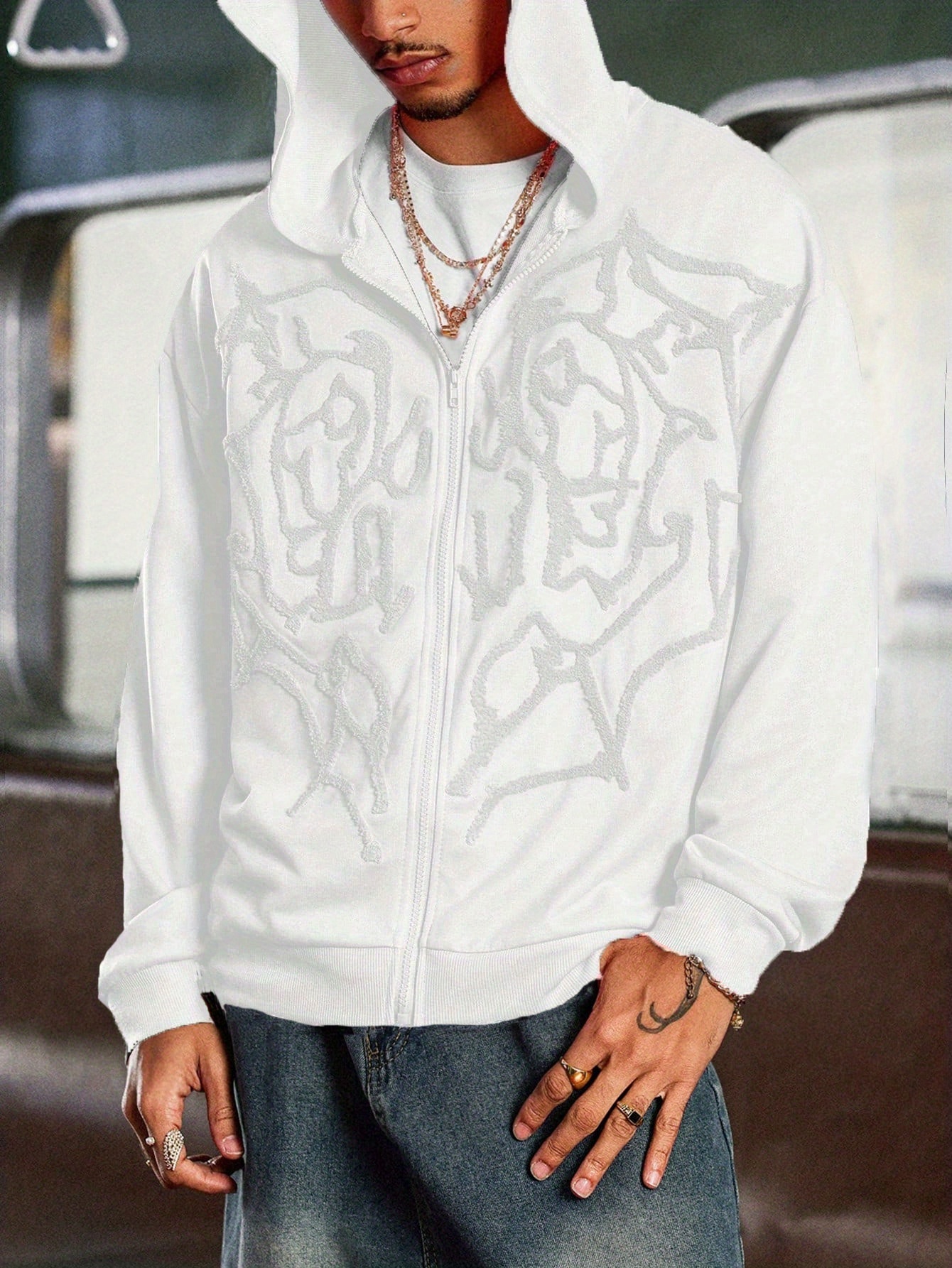 Men's Hooded Sweatshirt with dragon Letter Embroidery,